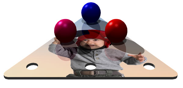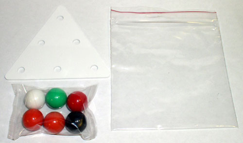 You simply place the triangle puzzle board on a flat surface and place the 6 marbles in the 6 holes.