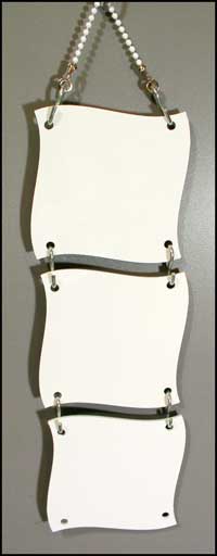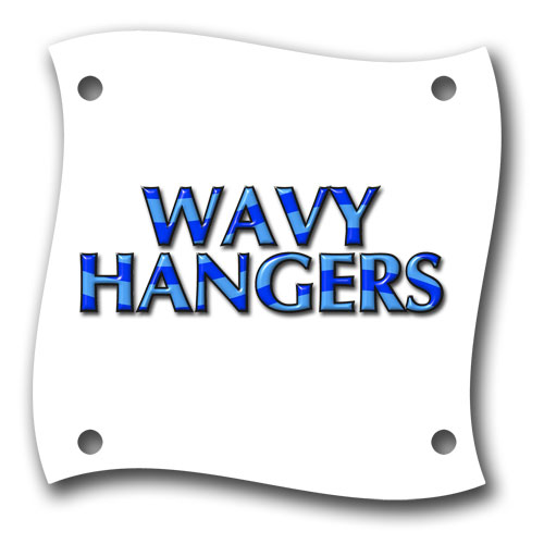 Wavy Hangers are made of single sided FRP sublimation material and are approximately 5" square (3.25" between hole centers). The sleek European design looks great in any setting.